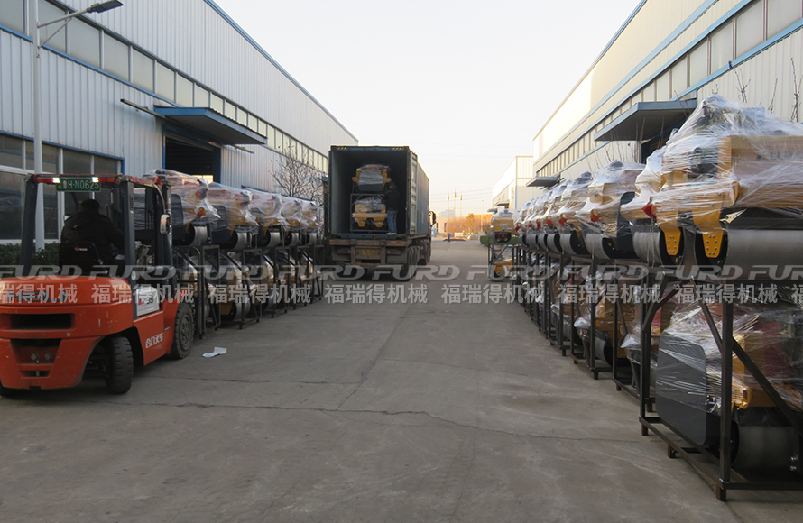 福瑞得機(jī)械45臺手扶壓路機(jī)打包出口澳大利亞