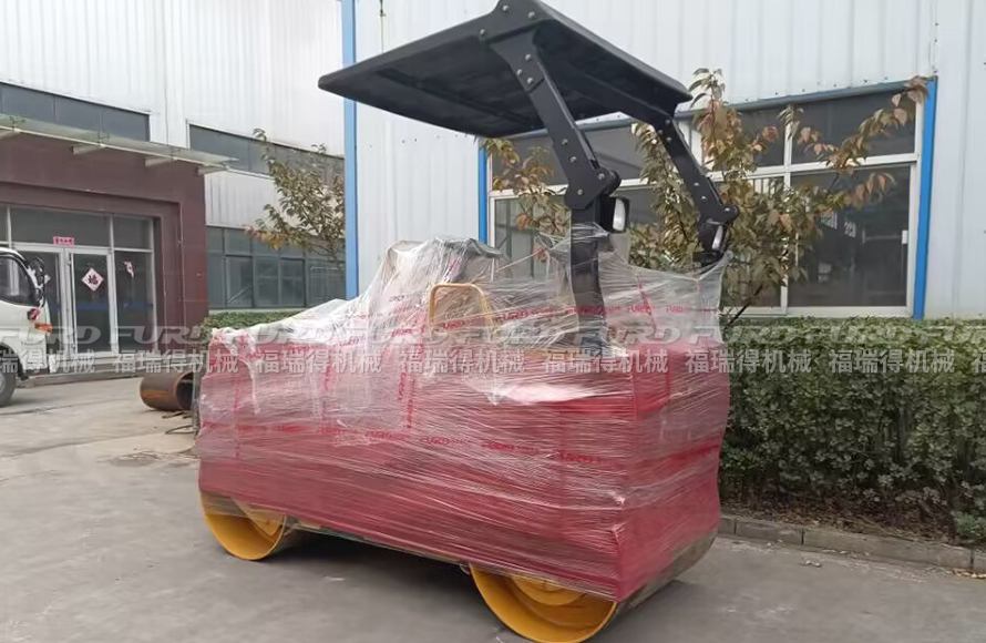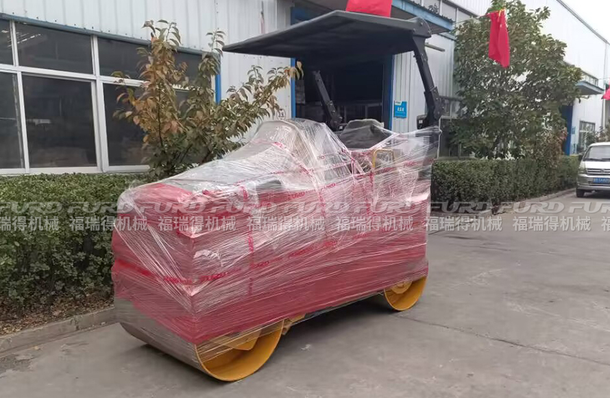 福瑞得機(jī)械一臺(tái)雙鋼輪座駕壓路機(jī)打包發(fā)往青島市